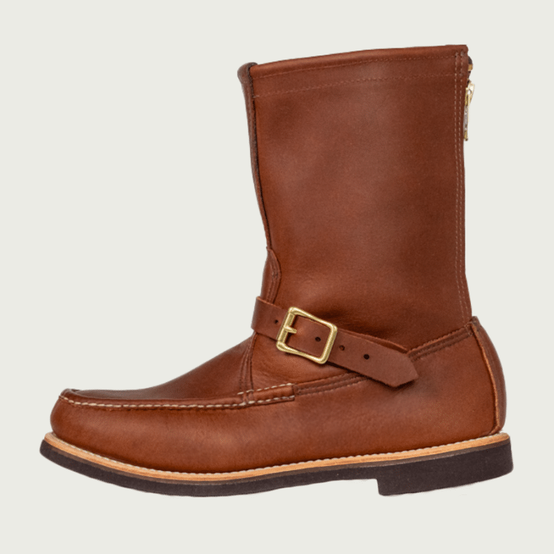 Combining the rugged good looks of the Cavalier, with several modifications for everyday convenience, the Zephyr was the original zipper-back moccasin. A brass YKK zipper above the heel provides added on-and-off speed and permits snugger fit around the leg than it’s Cavalier forefather.